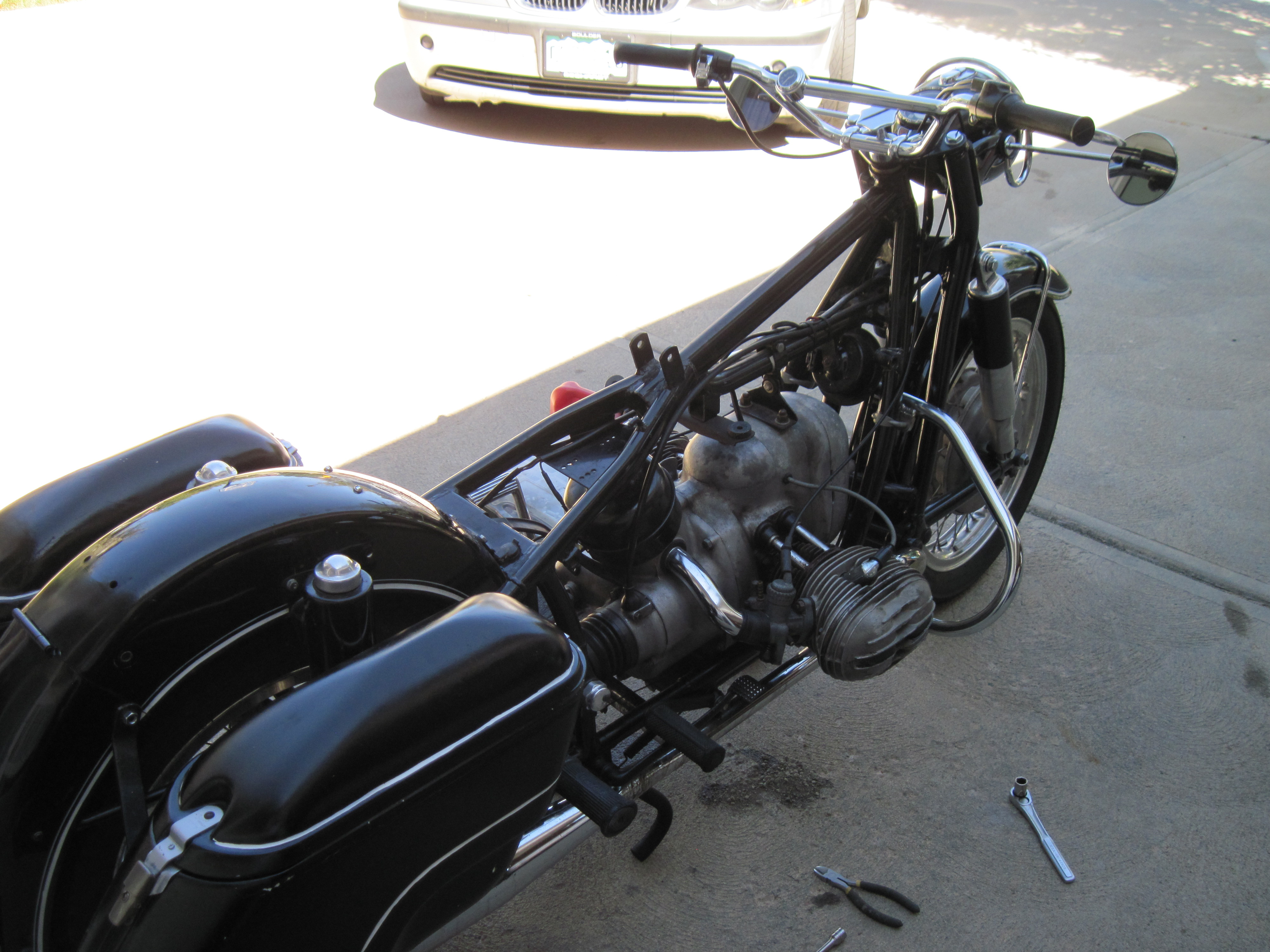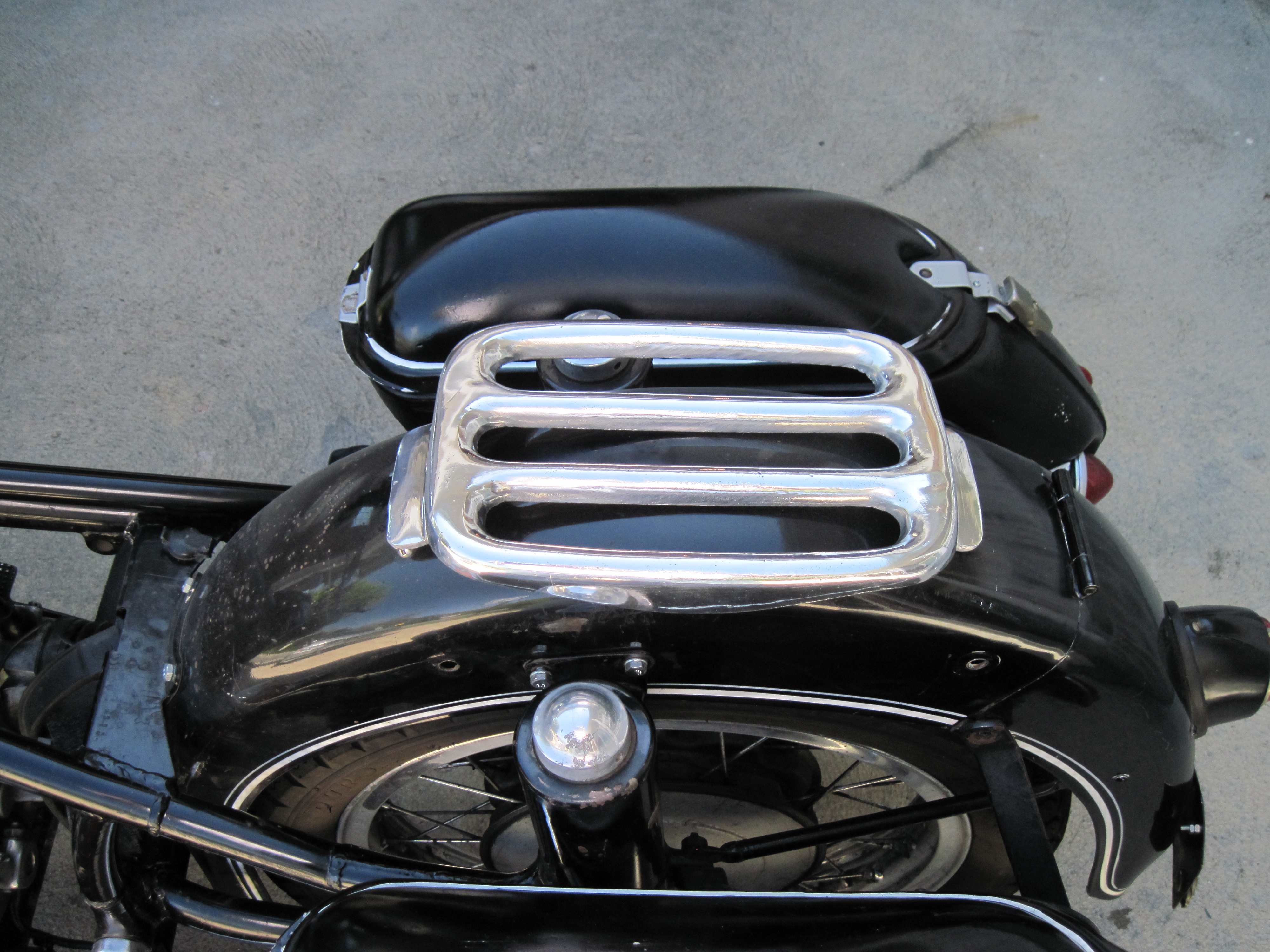 After removing the seat, i wanted to see how the chromed luggage rack o the back fender is going to look. No holes drilled yet… and will save that project for a different day.